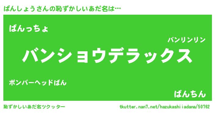 | 意味不明あだ名 | 『自称ばんしょう』『永久保存ばんしょう』 |