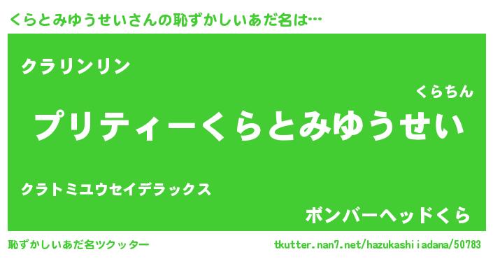 | 胡散臭い通販商品みたいなあだ名 | 『モテモテ間違いなし霊験あらたかなお札…その名も「くらとみゆうせい」』 |