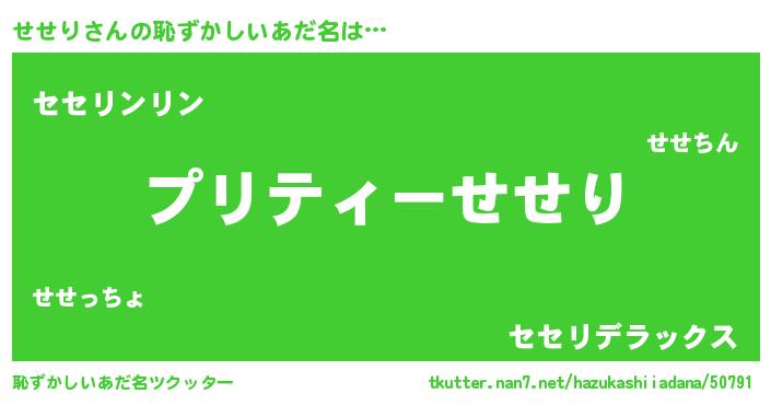 | ヘコむあだ名 | 『せせにー』『せせぷりん』『豆乳』 |