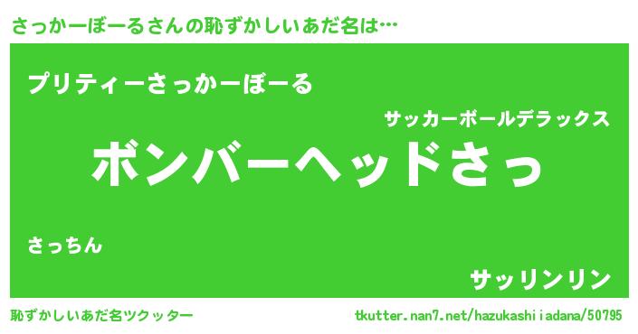 | 男性向けラノベタイトル風あだ名 | 『おまえをオタクにしてやるから、俺をさっかーぼーるにしてくれ! 』 |