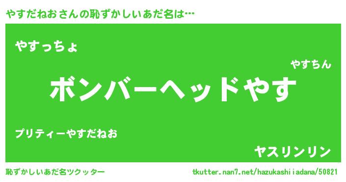 | ヒーロー風カッコイイあだ名 | 『慈愛の使者やすだねお』『仮面ヤスダー』 |