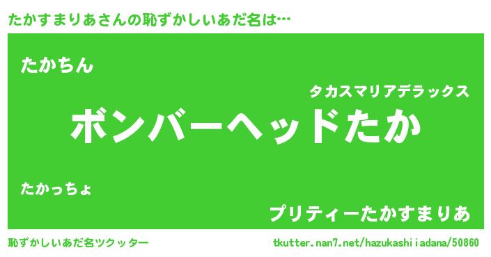 | ヘコむあだ名 | 『たかすまりあ(小並感)』『たかにゅー』 |