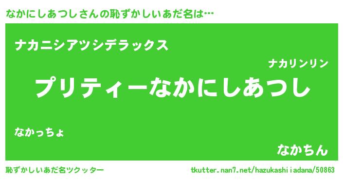 | ヘコむあだ名 | 『なかもー』『なかにしあつし(笑)』 |