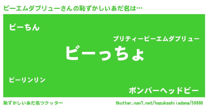 | 欧米人風あだ名 | 『ダレノガレビーエムダブリュー』 |