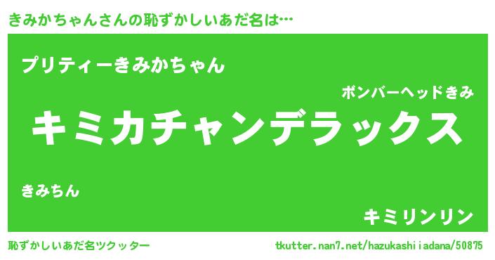 男性向けラノベタイトル風あだ名 | 『この素晴らしい世界にきみかちゃんを!』 |