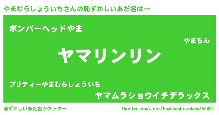 | 男性向けラノベタイトル風あだ名 | 『やまむらしょういちの嫁は女の子じゃないと思った?』 |