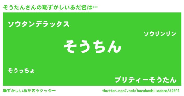 | 意味不明あだ名 | 『永久保存そうたん』『自称そうたん』 |
