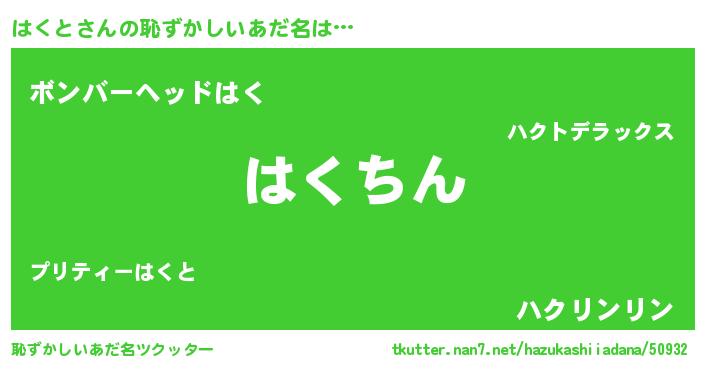 | ヘコむあだ名 | 『はくと(笑)』『はくを』『はくもー』 |