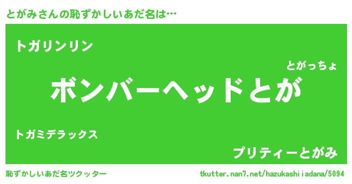 | ヘコむあだ名 | 『とがっぺ』『とがっふぃ~』 |