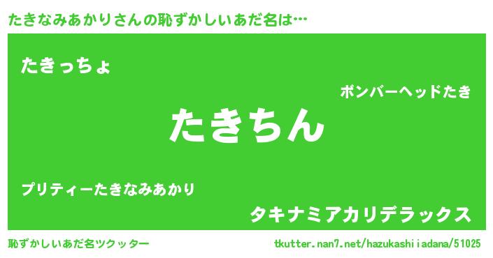 | ヘコむあだ名 | 『たきなみあかり(苦笑)』『なまこ酢』 |