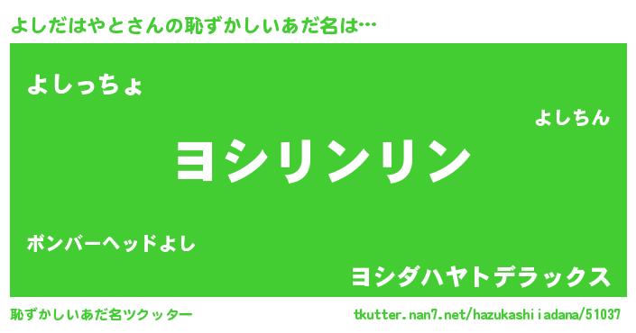 | 男性向けラノベタイトル風あだ名 | 『よしだはやとの嫁は女の子じゃないと思った?』 |
