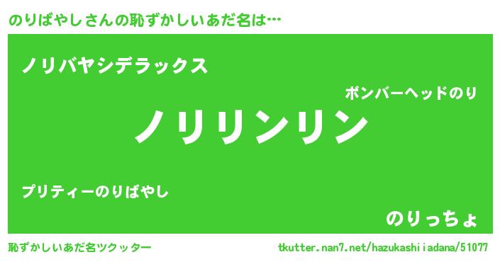 | 意味不明あだ名 | 『とにかく怪しいのりばやし』 |