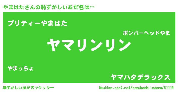 | ヒーロー風カッコイイあだ名 | 『天弓騎士ヤマ』『スーパーヤマハタ』 |