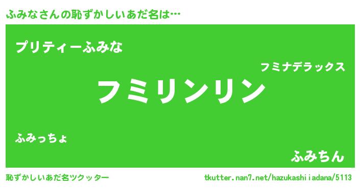 | 意味不明あだ名 | 『とにかく怪しいふみな』『自称ふみな』 |