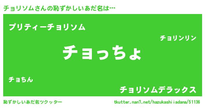 | 欧米人風あだ名 | 『チョリソムクリステル』 |