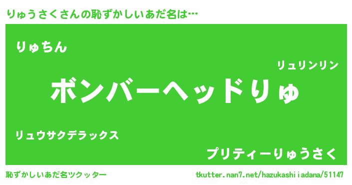 | ヘコむあだ名 | 『りゅうさく(爆)』『りゅもー』 |