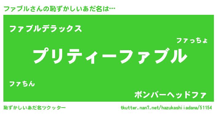 | 意味不明あだ名 | 『ペロリンファブル』『自称ファブル』 |
