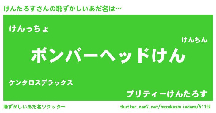 | ヘコむあだ名 | 『つくし』『けんにゅー』『けんっ子』 |