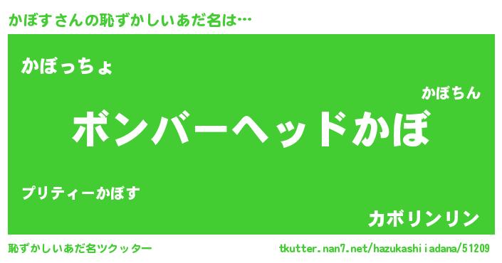 | ヘコむあだ名 | 『牛乳』『かぼぷりん』『かぼす(笑)』 |