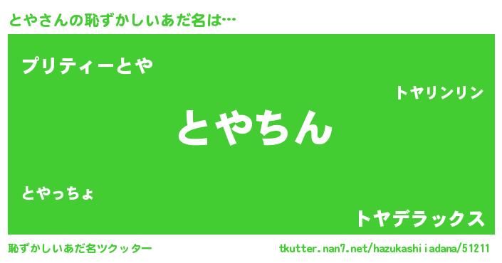 | 可愛いあだ名 | 『とやママ』『とやぷりん』 |