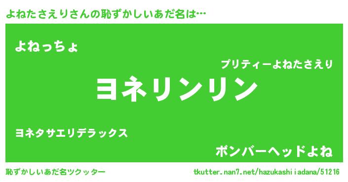 | 意味不明あだ名 | 『とにかく怪しいよねたさえり』 |