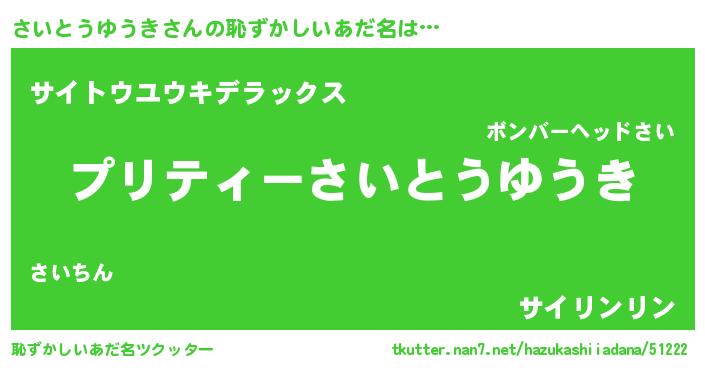 | 胡散臭い通販商品みたいなあだ名 | 『億万長者になれるブレスレット…その名も「さいとうゆうき」』 |