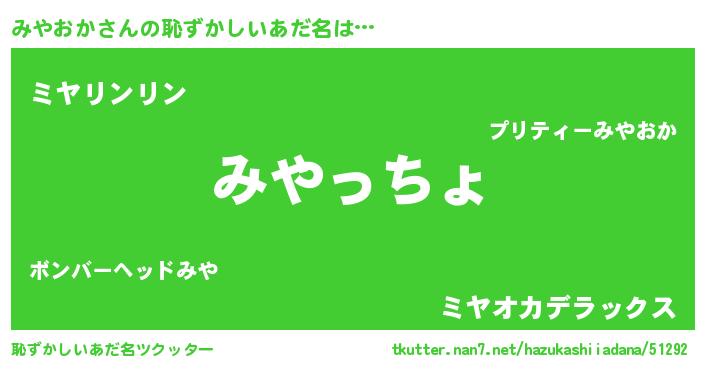| ポケモン風あだ名 | 『ミヤオダネ』『ミーヤイ』 |