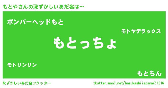 | 意味不明あだ名 | 『もとやフォーエバー』『永久保存もとや』 |