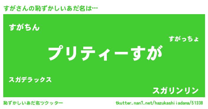 | ポケモン風あだ名 | 『スガチュウ』『ゼニスガ』『ヒスガ』 |