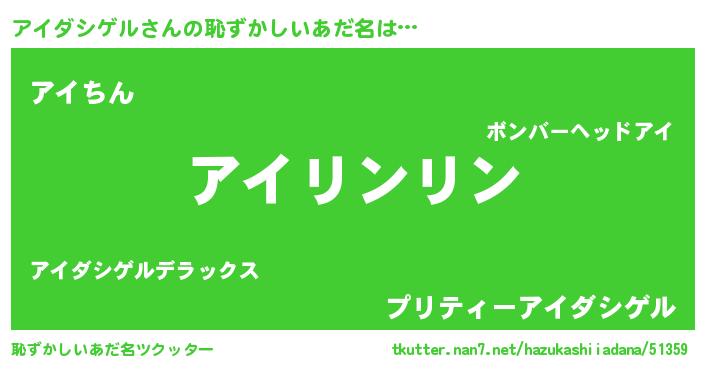 | ヘコむあだ名 | 『アイお』『アイダシゲル(震え声)』 |