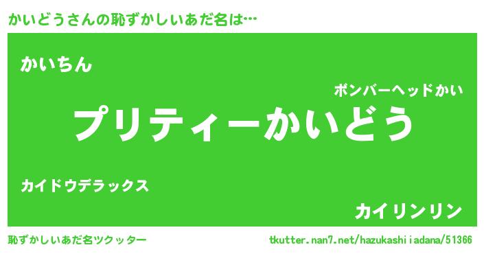 | ヘコむあだ名 | 『かいにゅー』『かいどう(笑)』 |