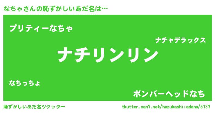 | 意味不明あだ名 | 『とにかく怪しいなちゃ』『自称なちゃ』 |