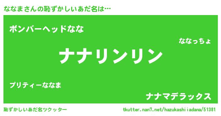 | ヘコむあだ名 | 『ななっちょ』『なまこ酢』 |