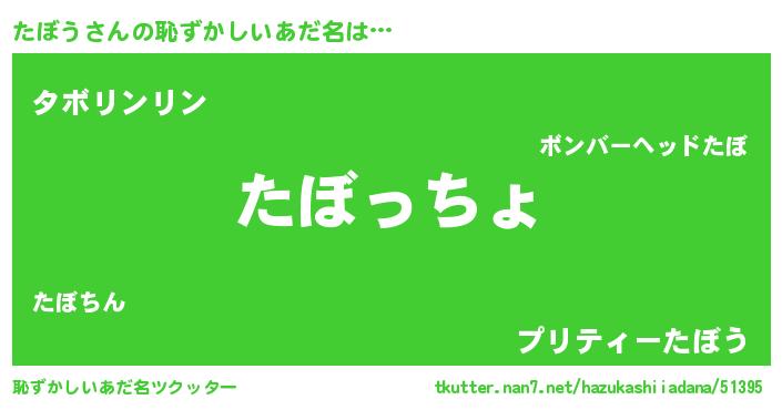 | 意味不明あだ名 | 『たぼうフォーエバー』『ペロリンたぼう』 |