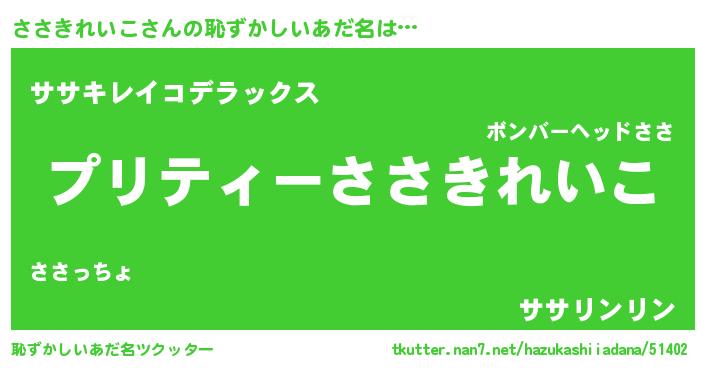 | ヒーロー風カッコイイあだ名 | 『スーパーササキレイコ』『魔戒騎士ササ』 |