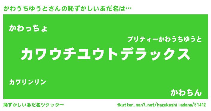 | ヒーロー風カッコイイあだ名 | 『仮面カワダー』『ネオカワウチユウト』 |