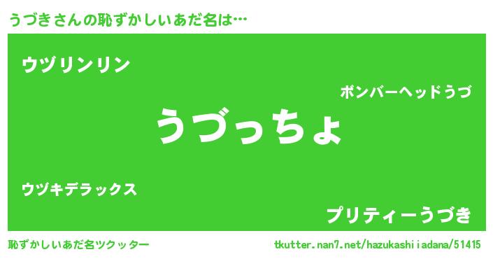 | ヒーロー風カッコイイあだ名 | 『ウルトラうづきマン』『炎刃騎士ウヅ』 |