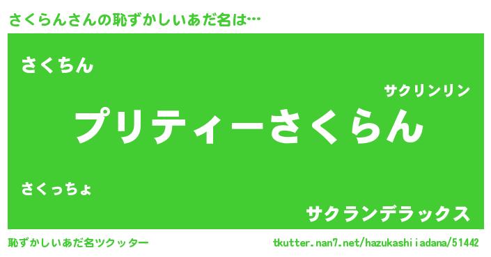| ヘコむあだ名 | 『さくっふぃ~』『さくらん(爆)』 |