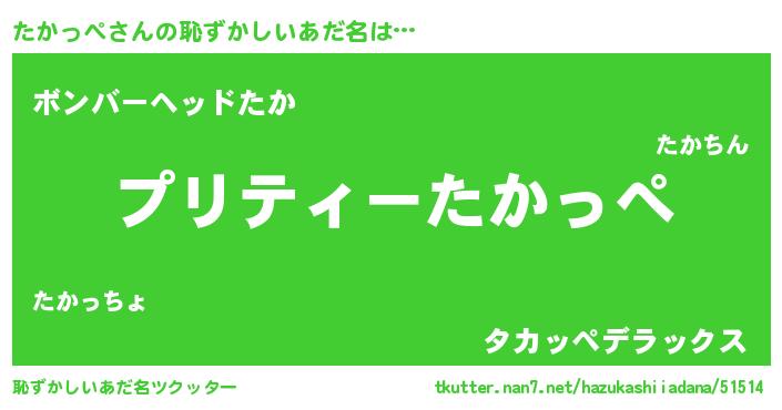 | 意味不明あだ名 | 『ペロリンたかっぺ』『自称たかっぺ』 |