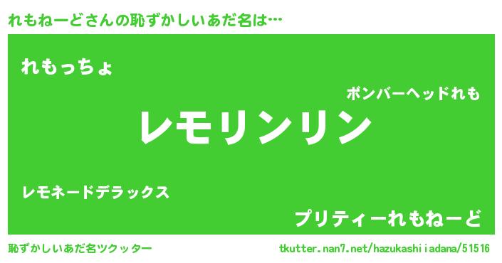 | 料理風あだ名 | 『れもねーどの豆乳スープ』 |