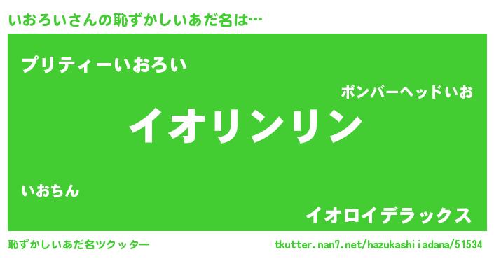 | 女子向けラノベタイトル風あだ名 | 『いおろいは平凡を望む』『闇のいおろい』 |