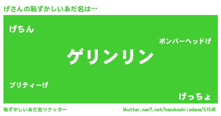 | ヘコむあだ名 | 『げっぺ』『げ(小並感)』『牛乳』 |