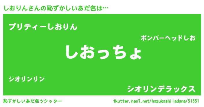 | 胡散臭い通販商品みたいなあだ名 | 『運命の人と巡り会える高級そうな壺…その名も「しおりん」』 |