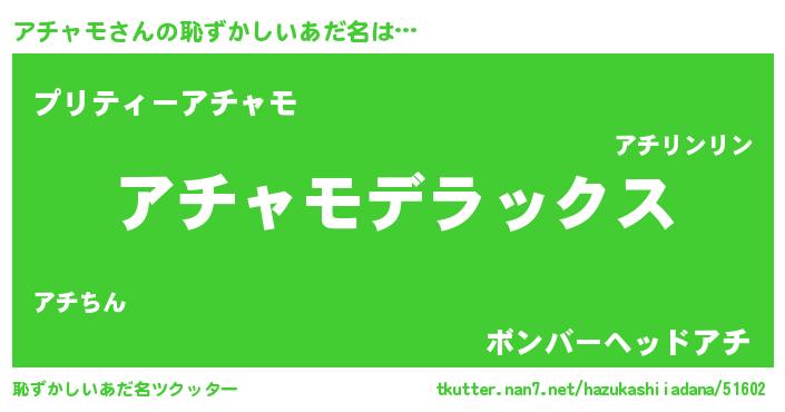 | 女子向けラノベタイトル風あだ名 | 『闇のアチャモ』『アチャモ恋絵巻』 |