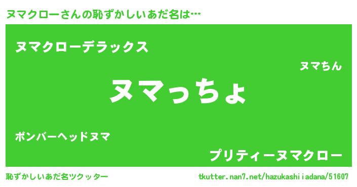 | ファンタジー風あだ名 | 『エターナルヌマクローー』『ゼヌマトゥ』 |