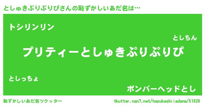 | 胡散臭い通販商品みたいなあだ名 | 『必ず成功する水晶球…その名も「としゅきぷりぷりぴ」』 |