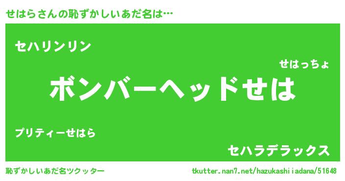 | ヒーロー風カッコイイあだ名 | 『仮面セハダー』『慈愛の使者せはら』 |