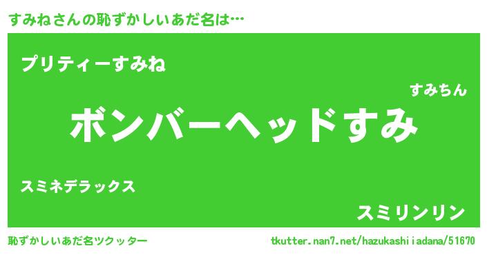 | ヘコむあだ名 | 『すみにー』『すみお』『すみね(爆)』 |