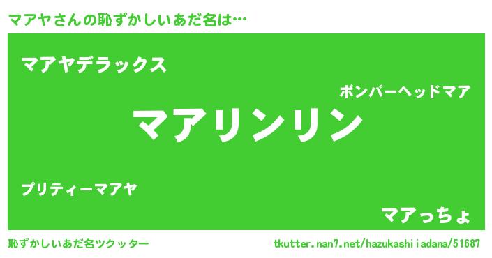 | 男性向けラノベタイトル風あだ名 | 『マアヤの嫁は女の子じゃないと思った?』 |