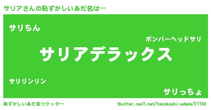 | 女子向けラノベタイトル風あだ名 | 『サリアなんてお断りですっ。』 |